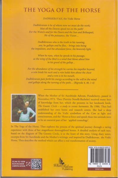 In The Yoga of the Horse, Thea explores the process of the spiritual journey through a racing experience with three of her magnificent thoroughbred horses. A detailed analysis of each race, based on the diagram of The Gnostic Circle, is at the heart of this story. Using diary notes, excerpts from Sri Aurobindo and the Mother’s writings, and inspired by Dadhikravan, the Vedic Horse, Thea describes the method which can affect a real transformation of society.